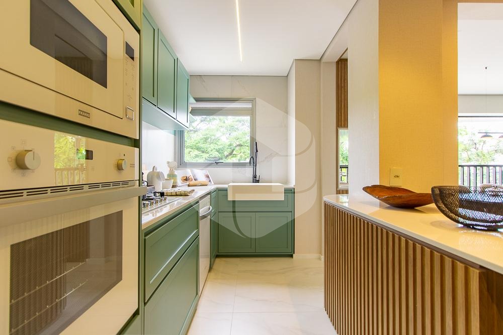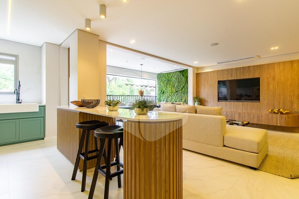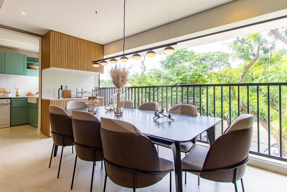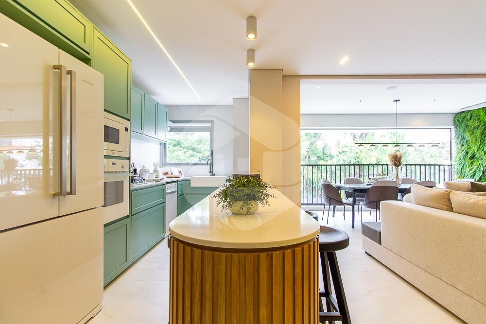 Os ambientes são abertos, proporcionando uma sensação de amplitude e integração. A cozinha é moderna e funcional, oferecendo um espaço equipado para preparar suas refeições.