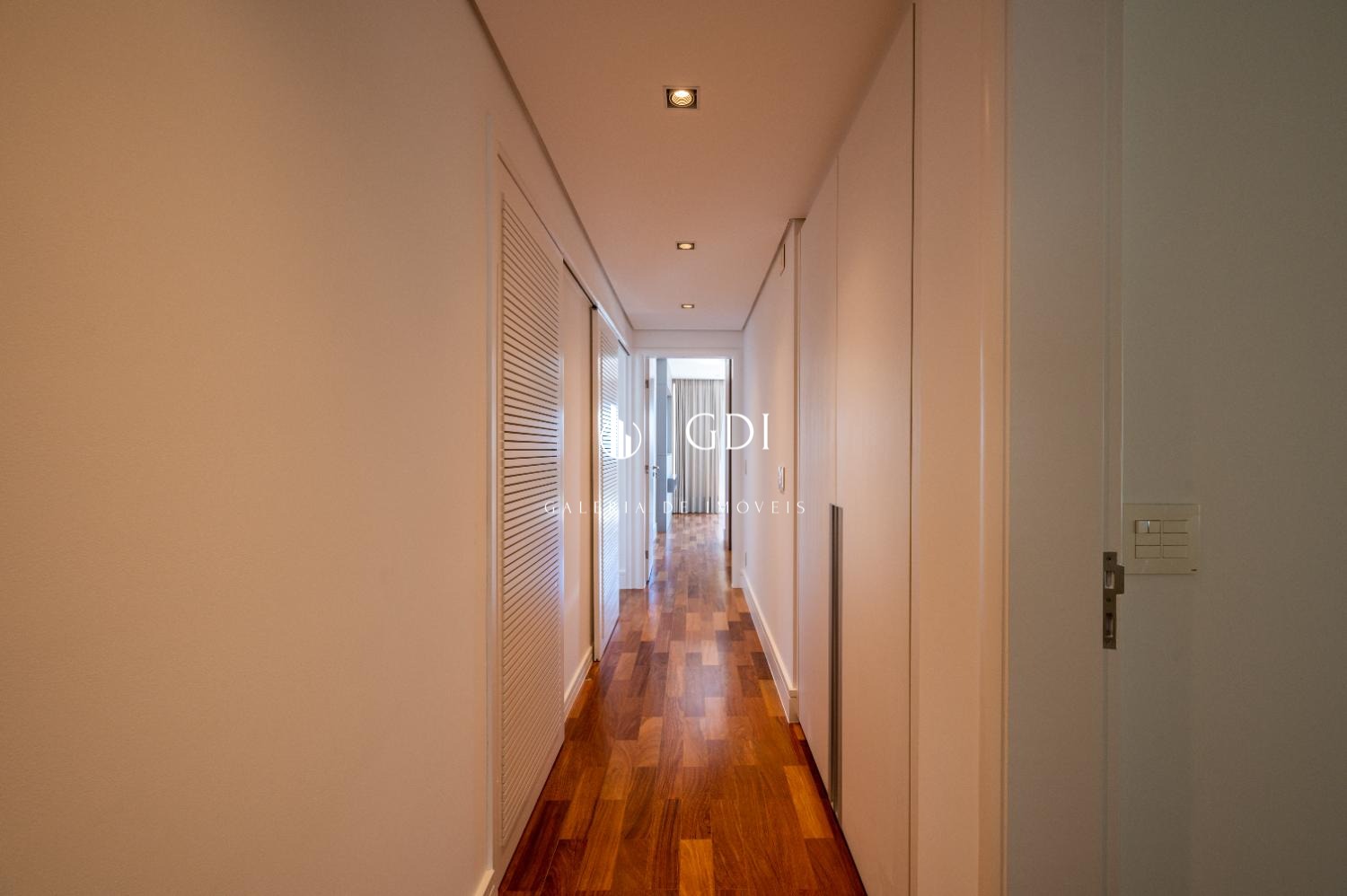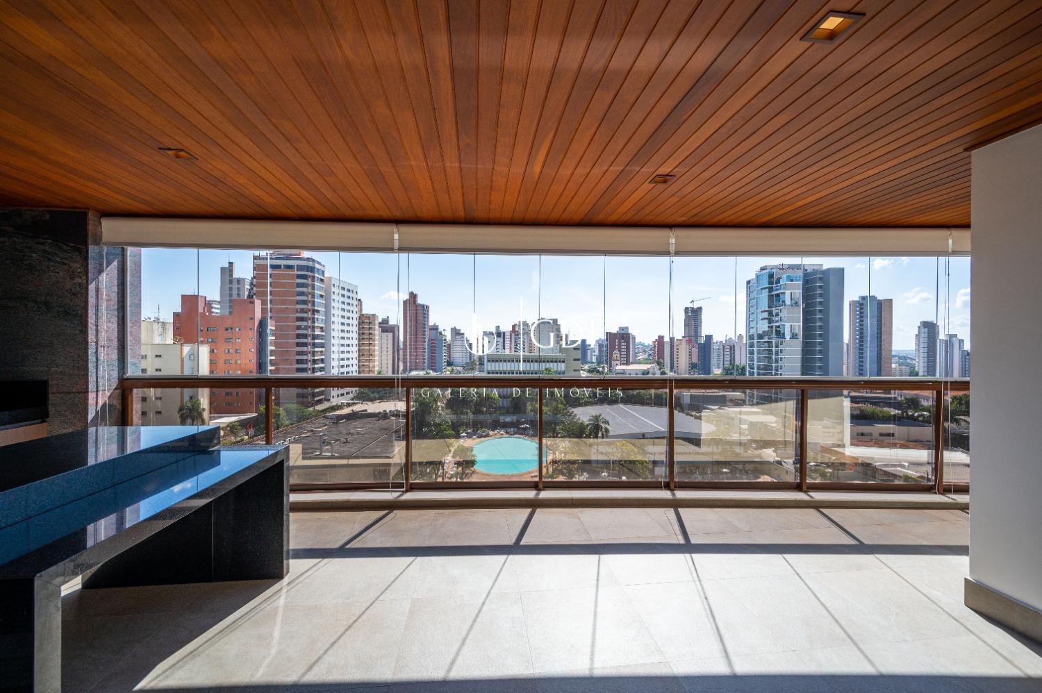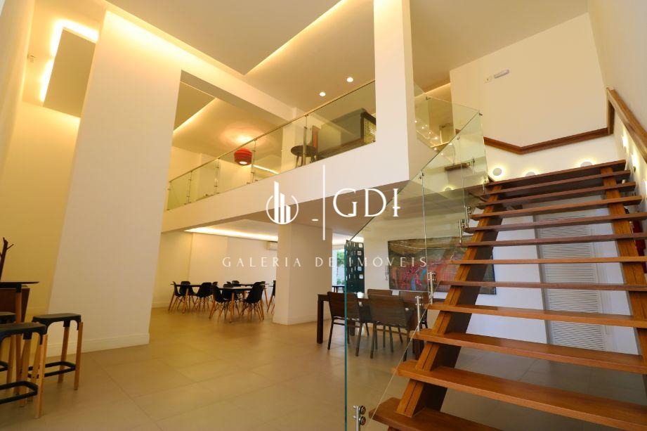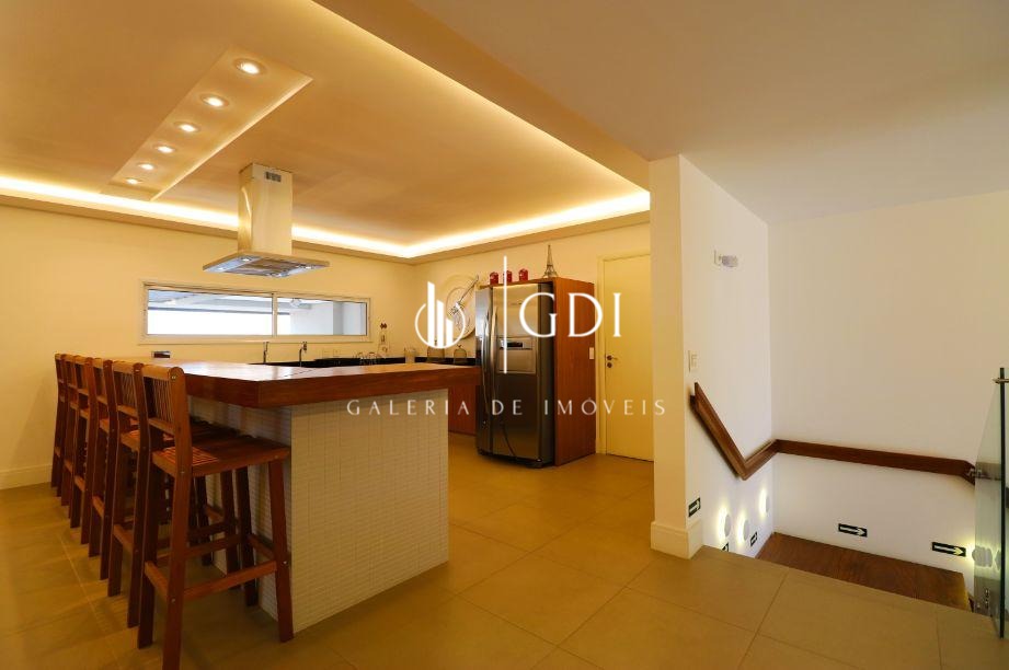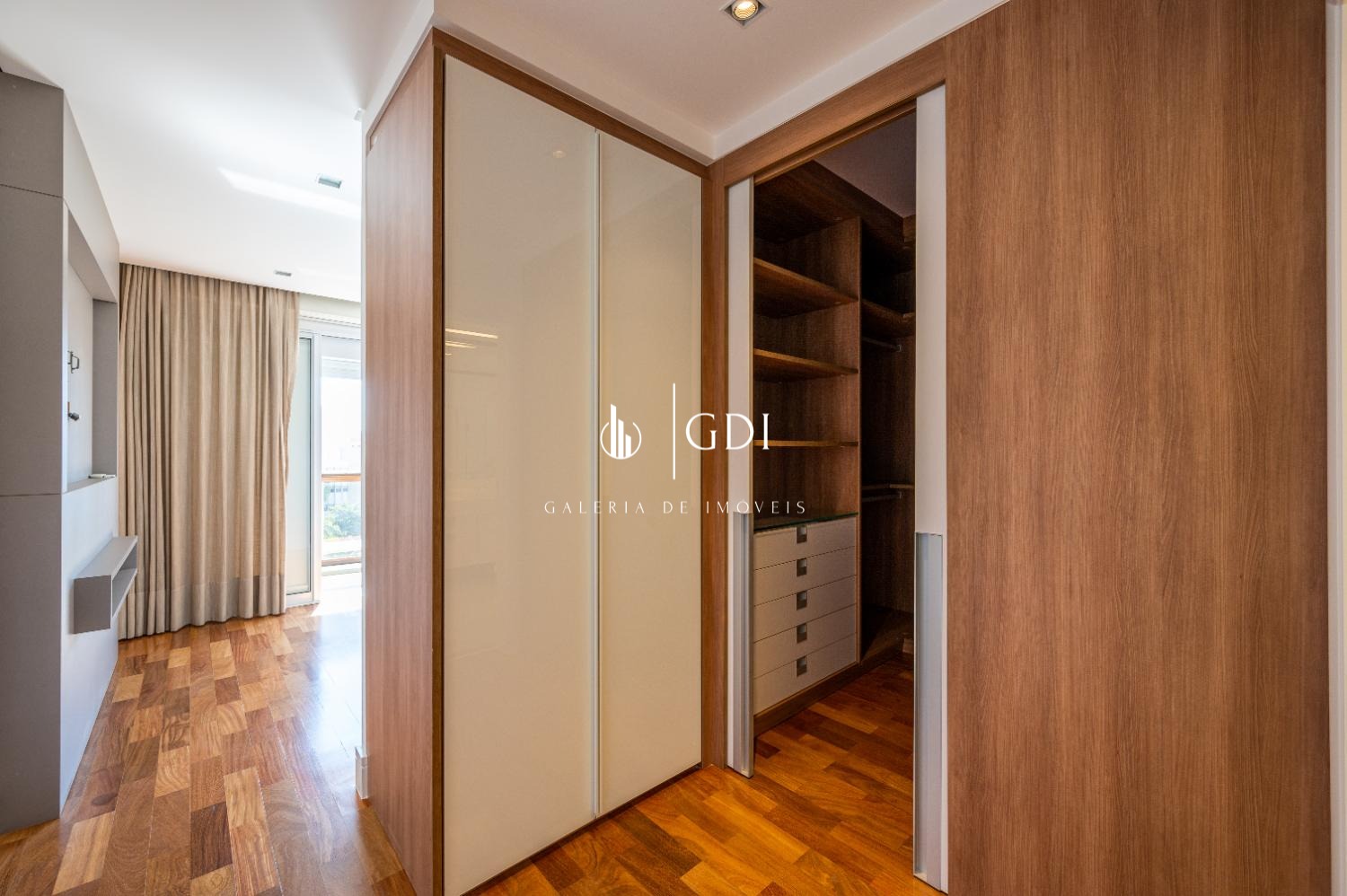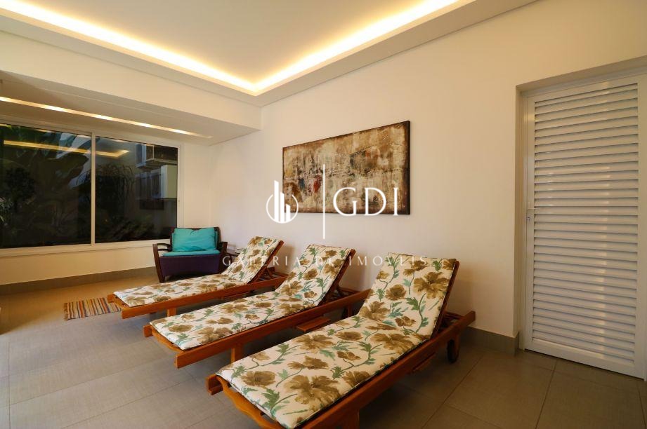 Os acabamentos reforçam o padrão elevado do imóvel, com piso em tábua corrida, teto rebaixado em gesso com iluminação indireta e ar-condicionado central, proporcionando conforto térmico e sofisticação em todos os ambientes.