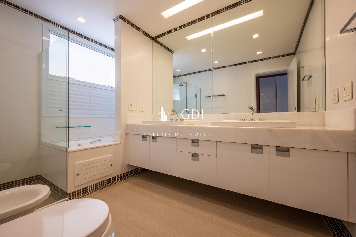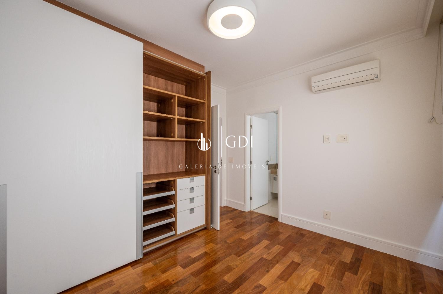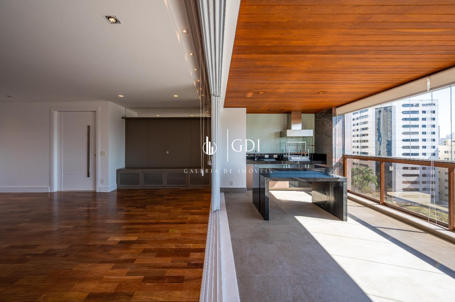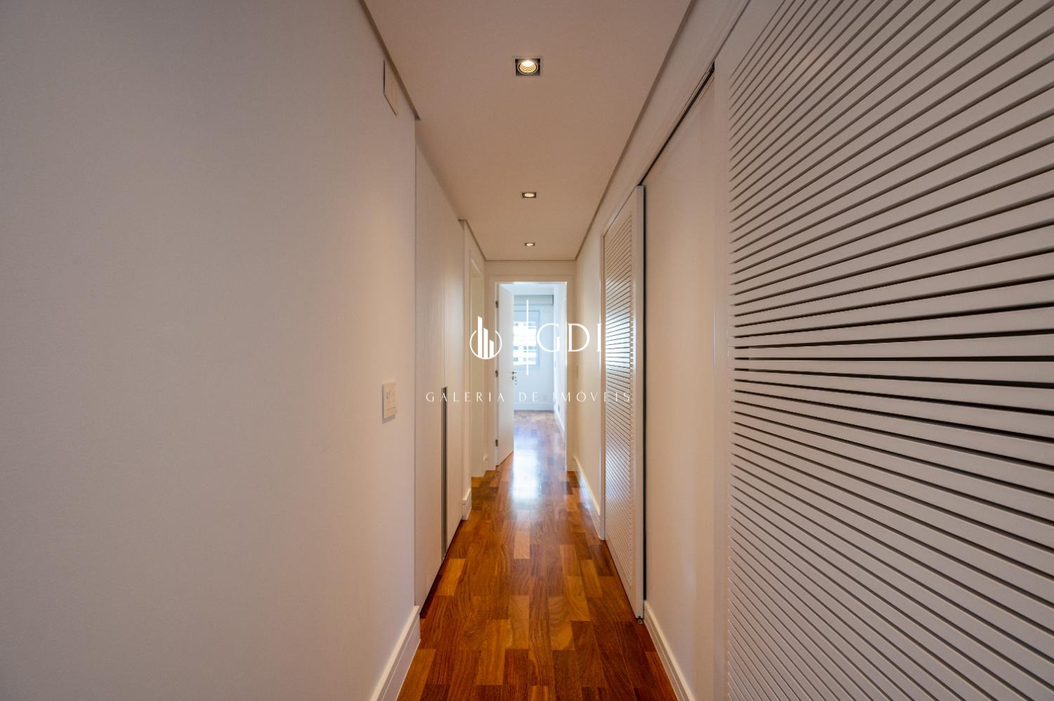 Os acabamentos reforçam o padrão elevado do imóvel, com piso em tábua corrida, teto rebaixado em gesso com iluminação indireta e ar-condicionado central, proporcionando conforto térmico e sofisticação em todos os ambientes.