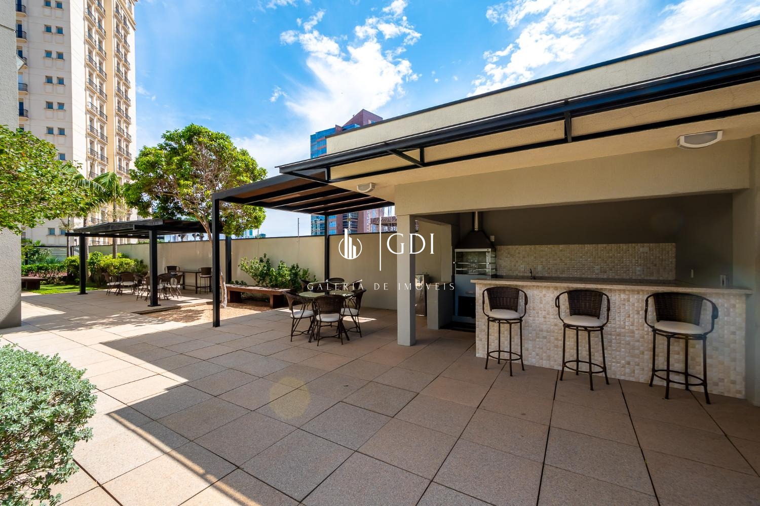 A varanda gourmet oferece uma vista agradável, proporcionando momentos agradáveis e relaxantes.