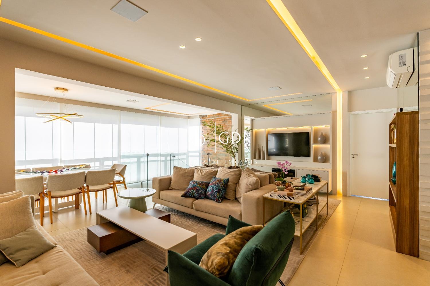 • Amplo living integrado com salas de estar e jantar