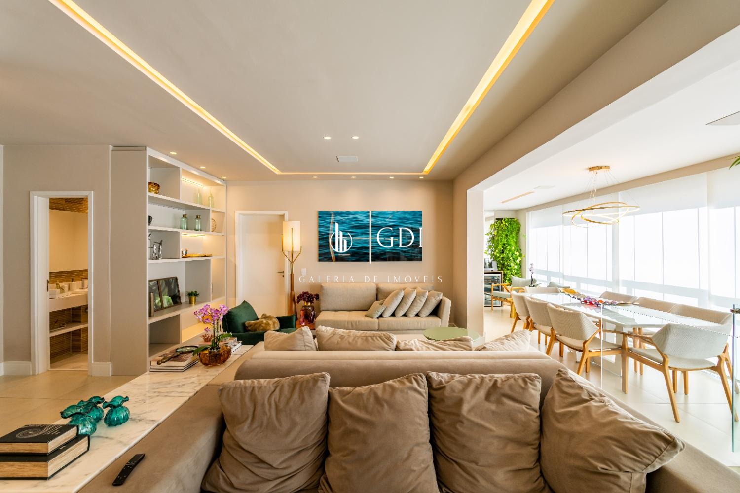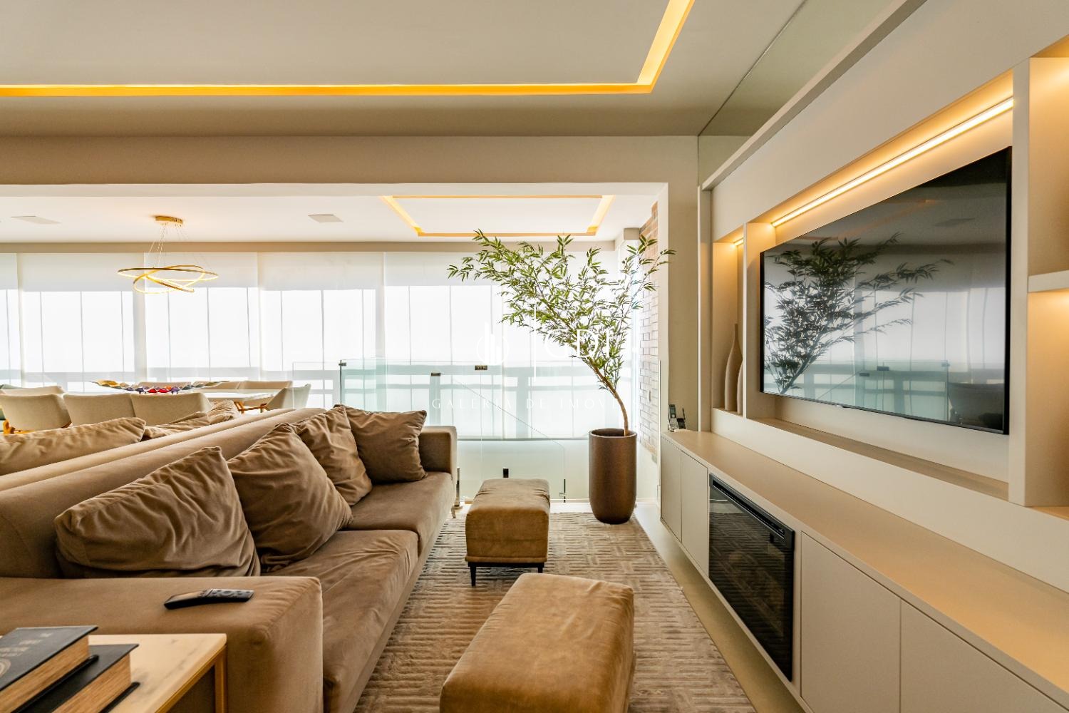 O imóvel apresenta ambientes amplos e bem distribuídos, com projeto de iluminação, ambientação sofisticada e acabamentos de alto padrão, criando uma atmosfera acolhedora e refinada para viver e receber.