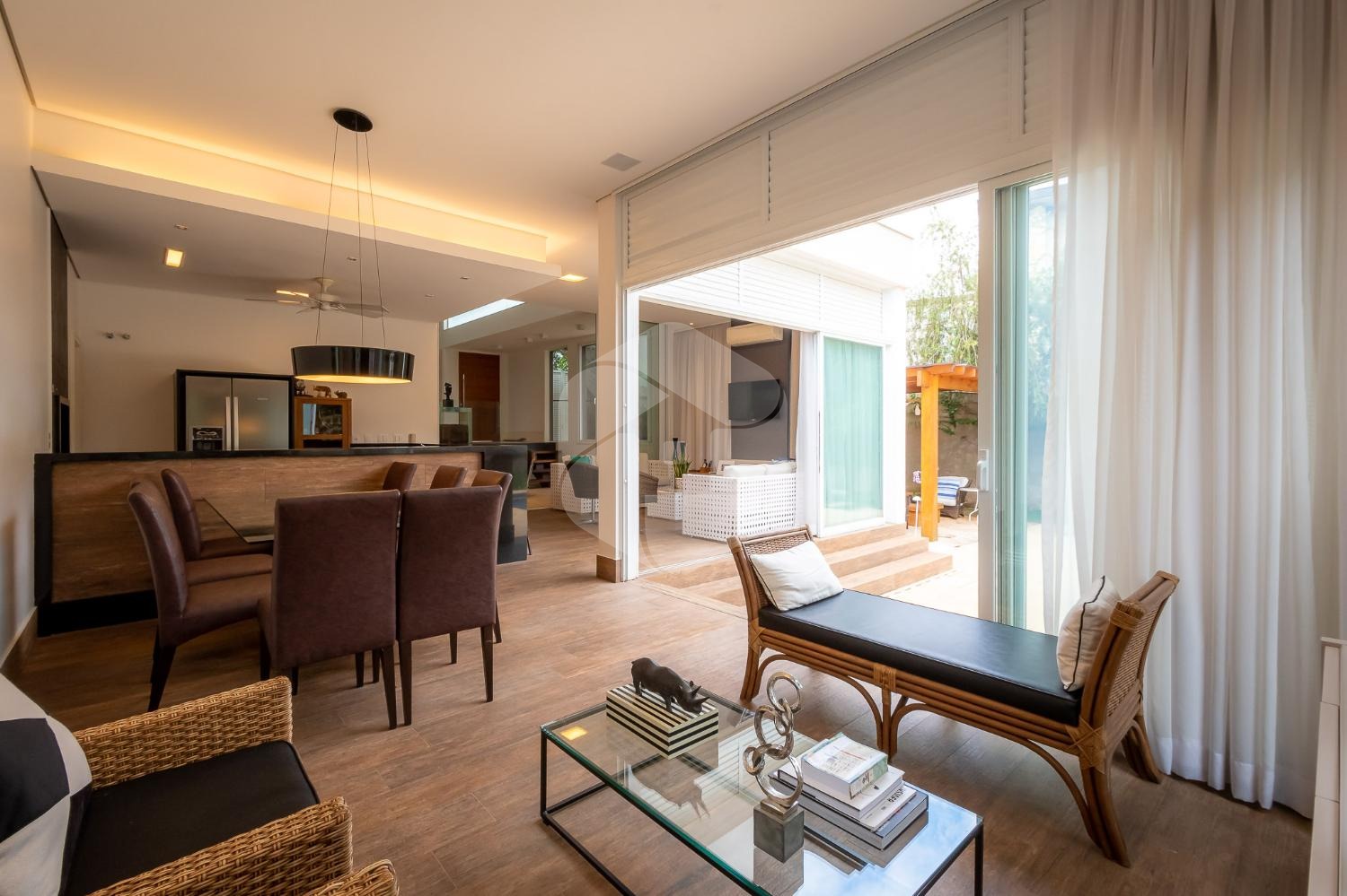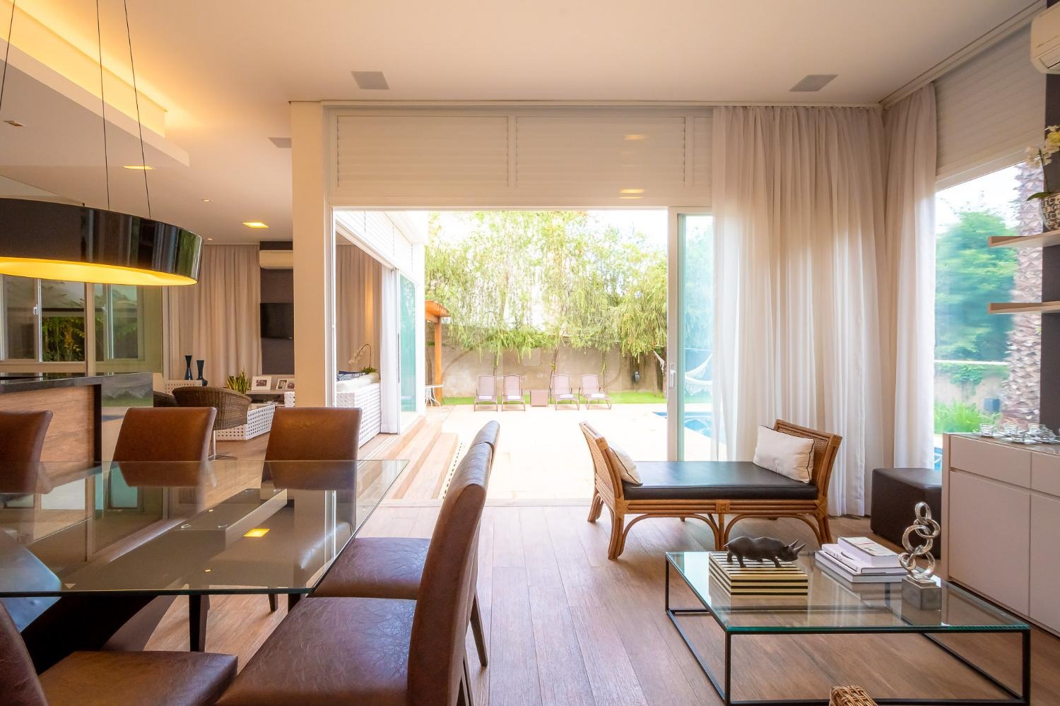 A sala principal é espaçosa e aconchegante, dividida em três ambientes que se voltam para a área de lazer. Essa integração permite que você desfrute de momentos especiais com sua família e amigos.