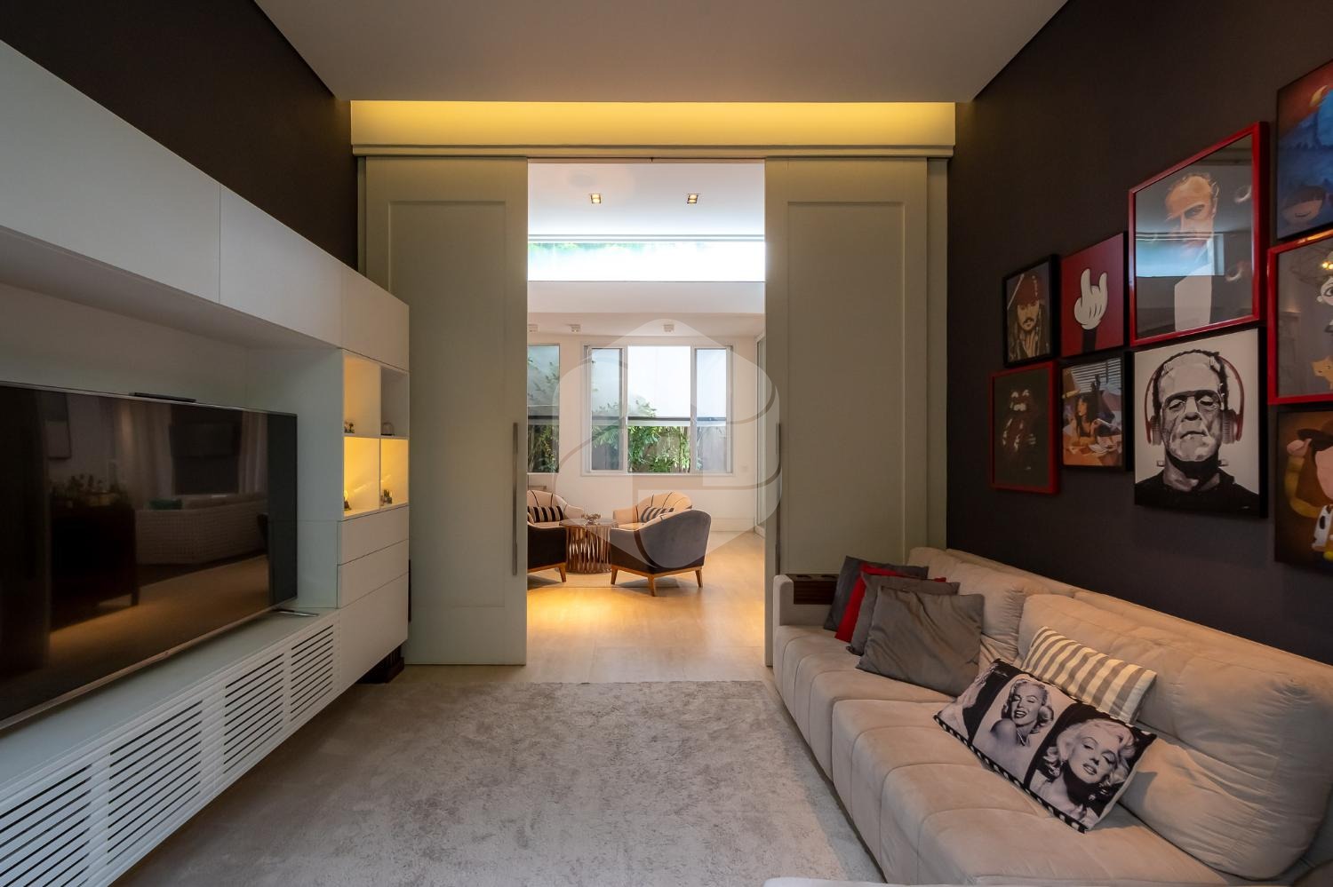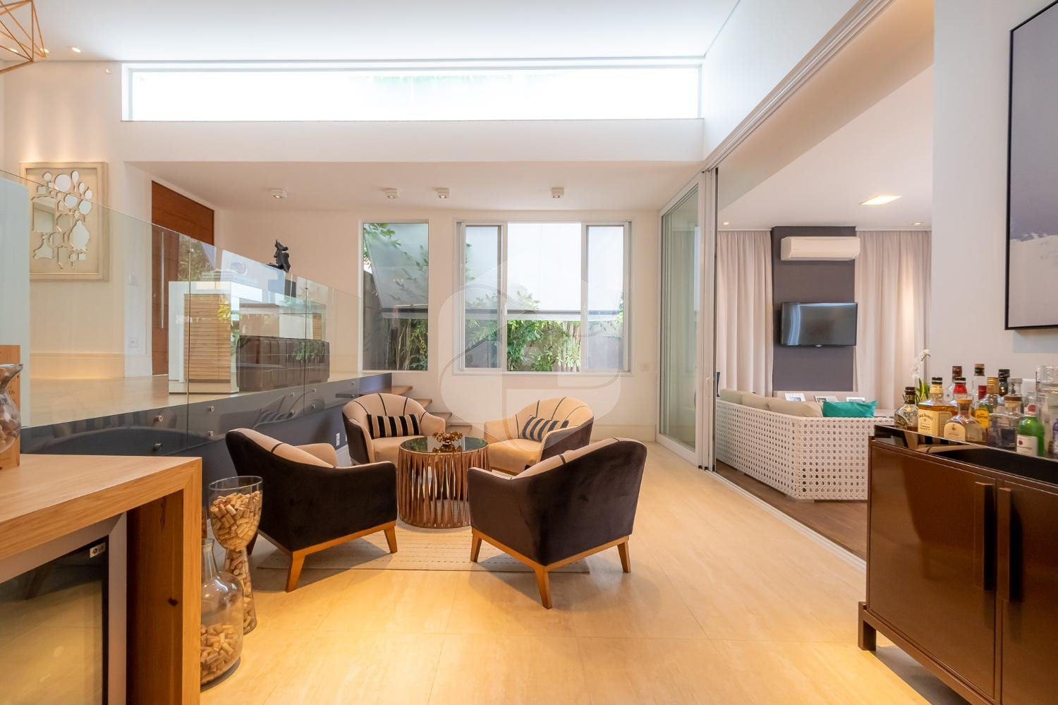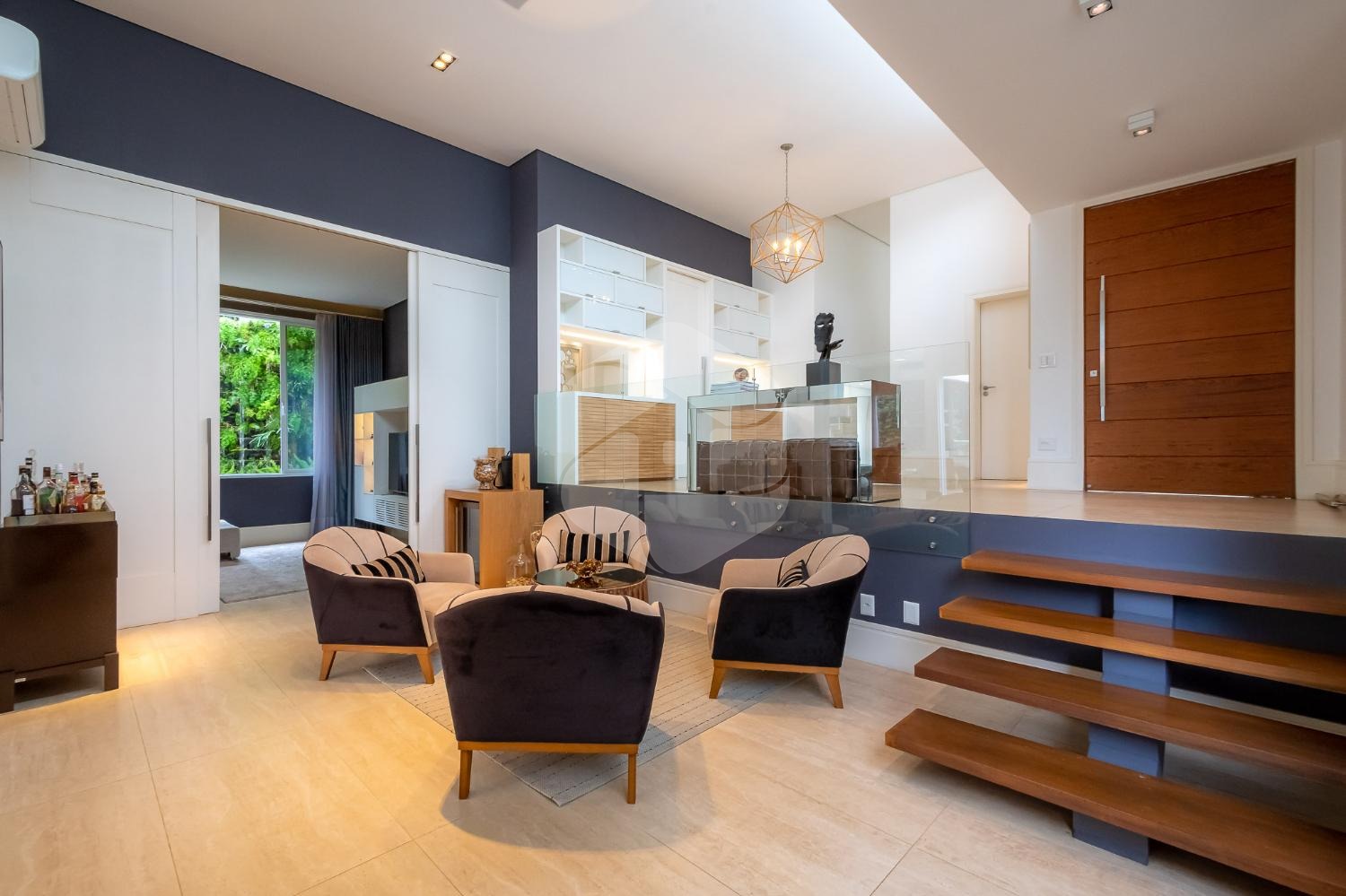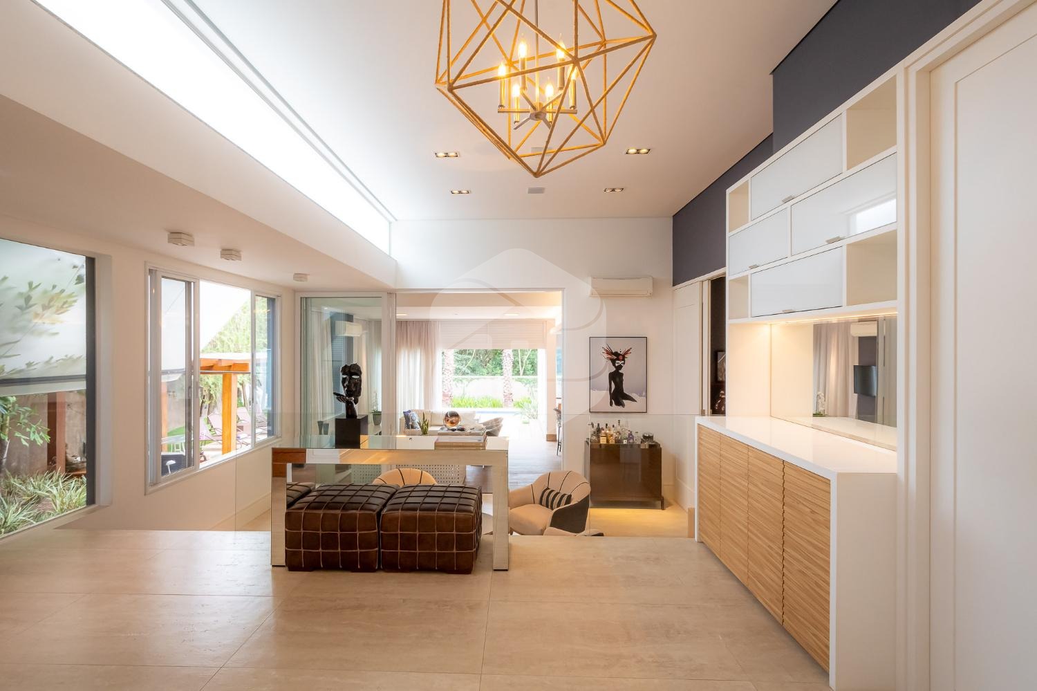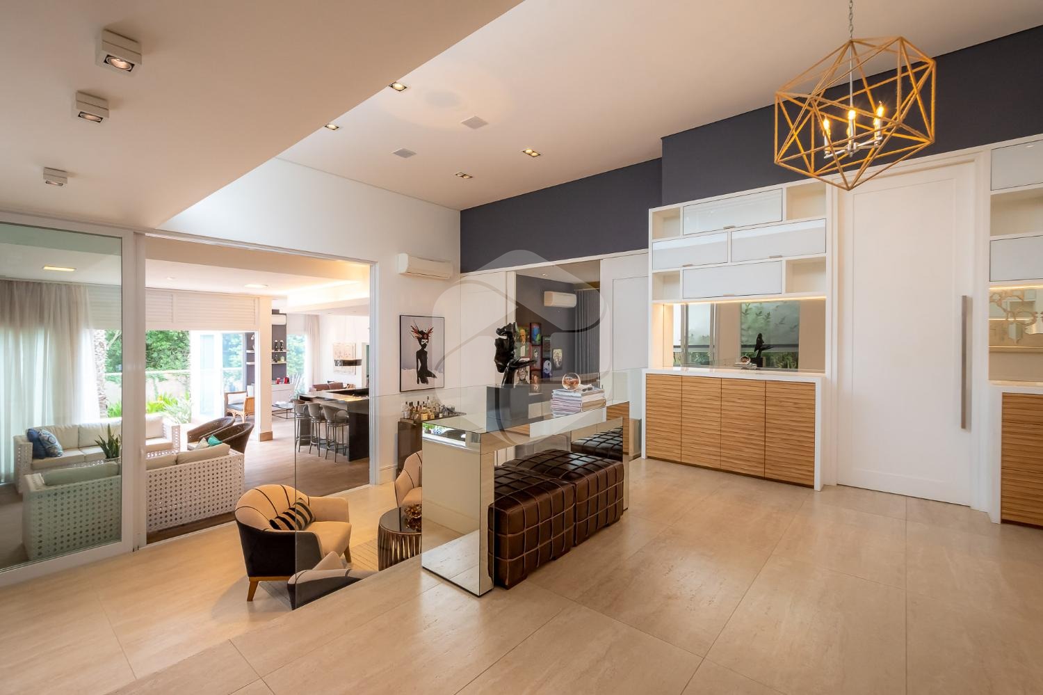 Ao entrar no imóvel, você será recebido por um elegante hall de entrada, que dá acesso a um lavabo, escritório e home theater, proporcionando espaços versáteis e funcionais para o seu dia a dia.
