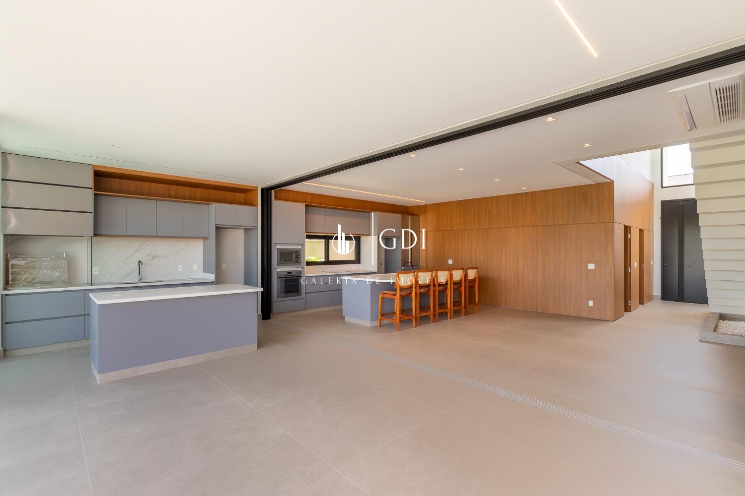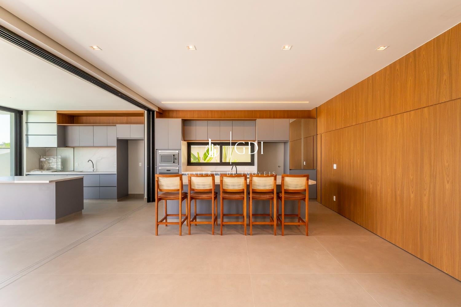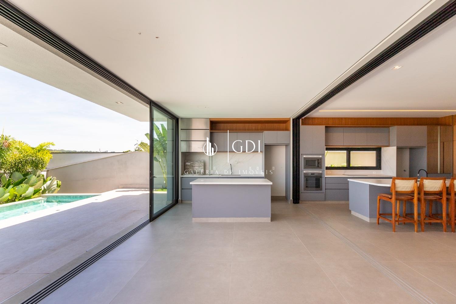 Espaço gourmet com fechamento embutido e integração total