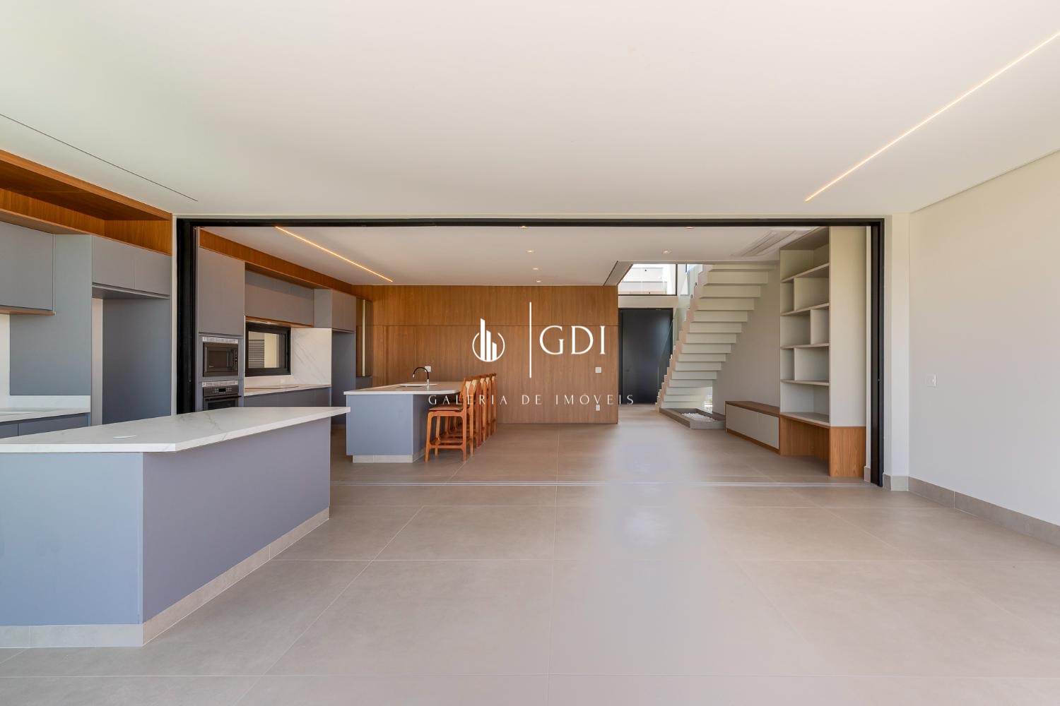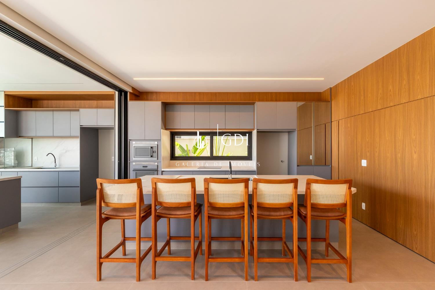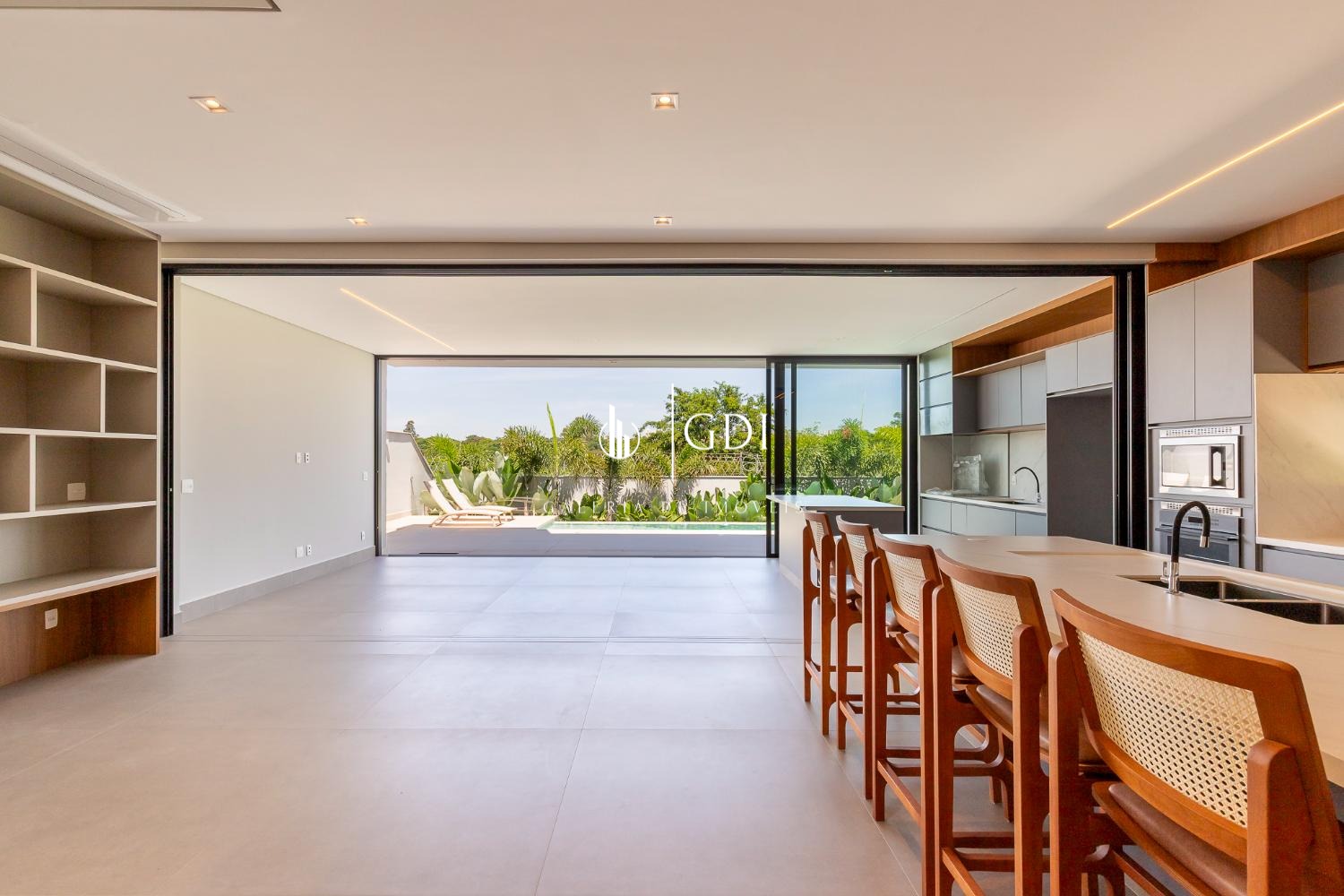 Espaço gourmet com fechamento embutido e integração total